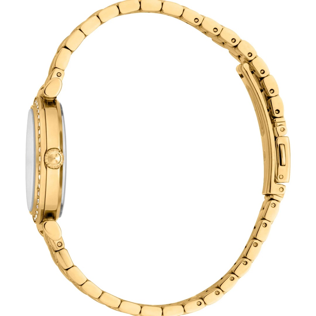 • Stainless steel strap, gold colored coating, polished, folding clasp